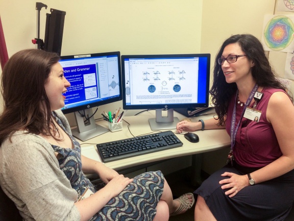 Research analyst Allison Aaron and Assistant Professor Reyna Gordon are studying how music and rhythm training could help children who struggle with language development. Their work is part of Vanderbilt's Program for Music, Mind and Society.